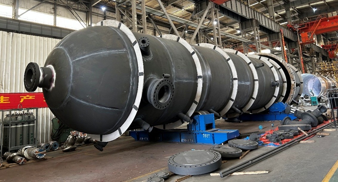 中國一冶承建的國內最大C型艙LNG運輸船78900立方米雙體儲罐,成功填補了國產節鎳型7Ni鋼新材料在液化氣體運輸船上的應用空白。中國一冶掌握低溫鎳合金鋼船載儲罐建造關鍵技術,攻克7Ni鋼焊接工藝難題,開發精準冷壓成型、裝配集成、自動化焊接等技術,有力推動高端液化氣體運輸船和LNG儲運裝備的國產化進程,助力我國在全球清潔能源產業鏈中占據主動地位。